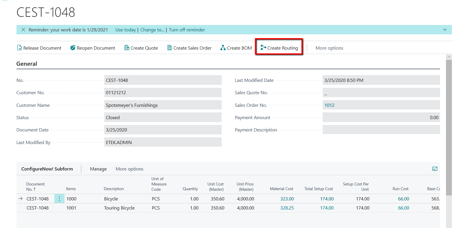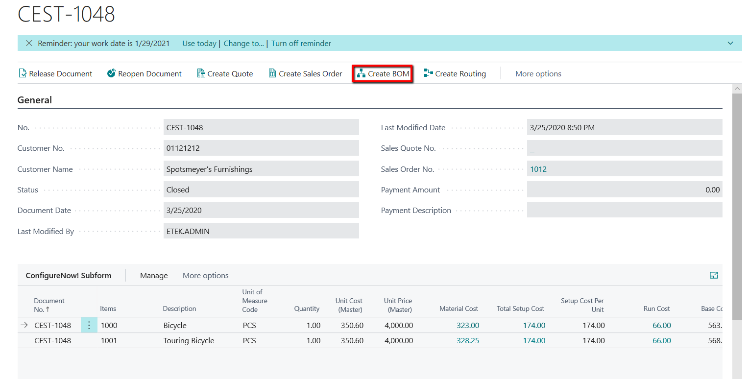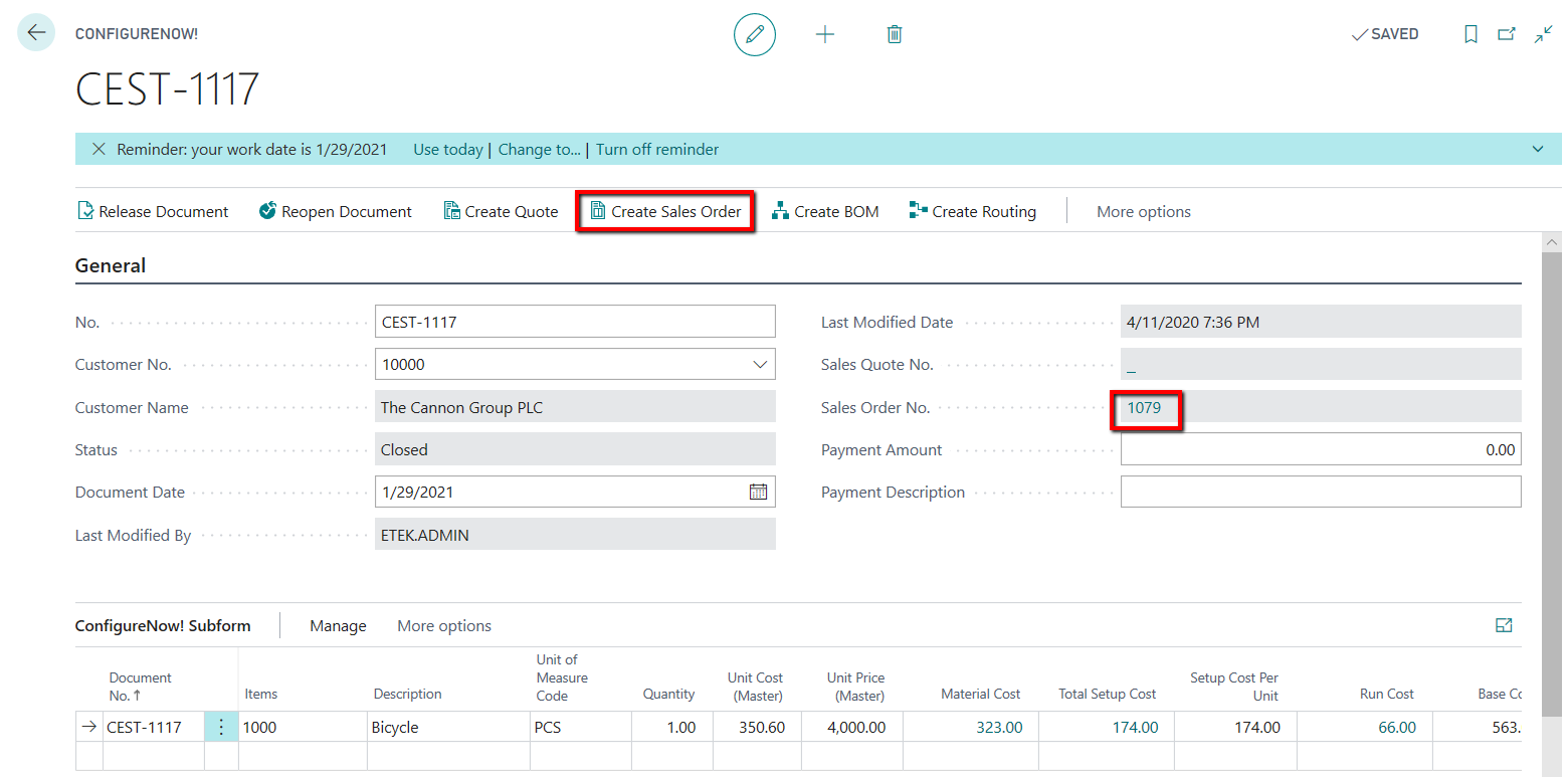 1.8 Create Sales Order from Configure Now! Card